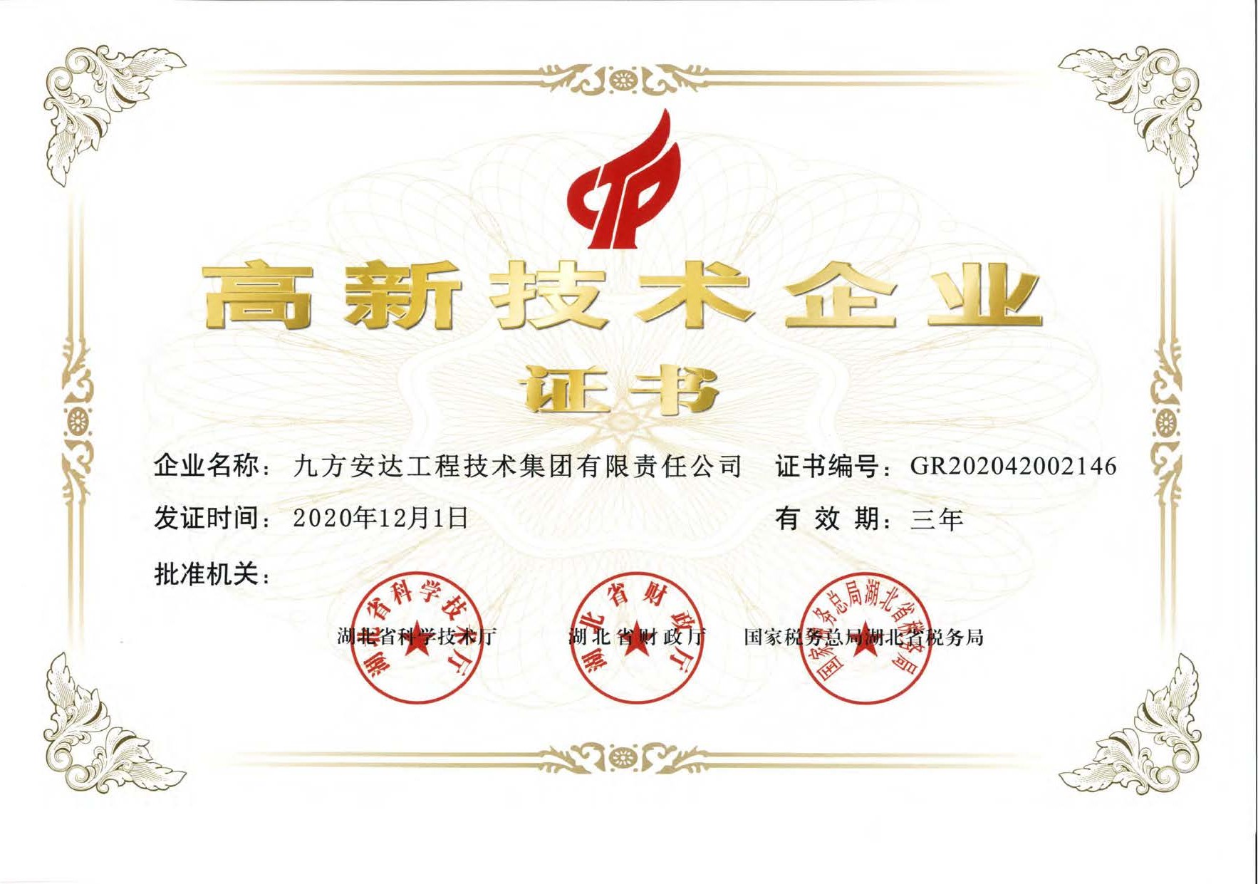 高新技術(shù)企業(yè)證書(shū)