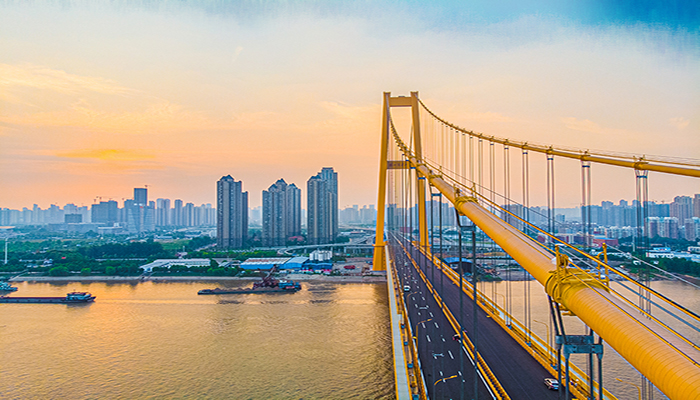 一橋飛架南北,天塹變通途。一句經(jīng)典道出新中國第一座長江大橋的雄偉。時隔62年,正值中華人民共和國建國70周年,武漢第十座長江大橋---楊泗港長江大橋終于建成通車。楊泗港長江大橋西起國博跨線橋,上跨長江水道,東至八坦立交,橋梁全長4134米,主橋長1700米,是世界跨度最大雙層公路懸索橋。