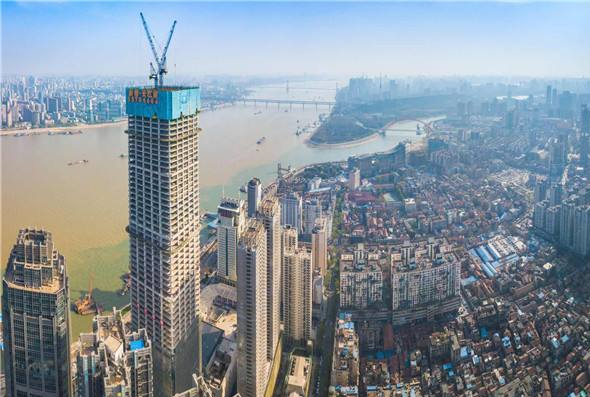 2019年8月28日,位于漢口江邊的武漢長江航運中心封頂。該建筑以336米的高度,與華中第一高樓475米的武漢綠地中心隔江呼應,成為長江主軸上最靚麗的建筑。武漢長江航運中心位于漢口沿江大道民生路口,整合長航集團等港航企業(yè)及事業(yè)單位臨港倉儲用地,建筑面積27.48萬平方米,建筑高度336米,是貫徹落實國家加快長江黃金水道開發(fā)利用、建設武漢長江航運中心戰(zhàn)略部署、提升完善長江中游港口航運綜合服務功能的重點工程。