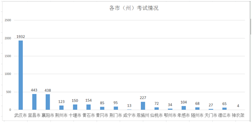 圖1:各市(州)考試情況(來(lái)源:鄂建質(zhì)安協(xié)〔2019〕41號(hào)文)