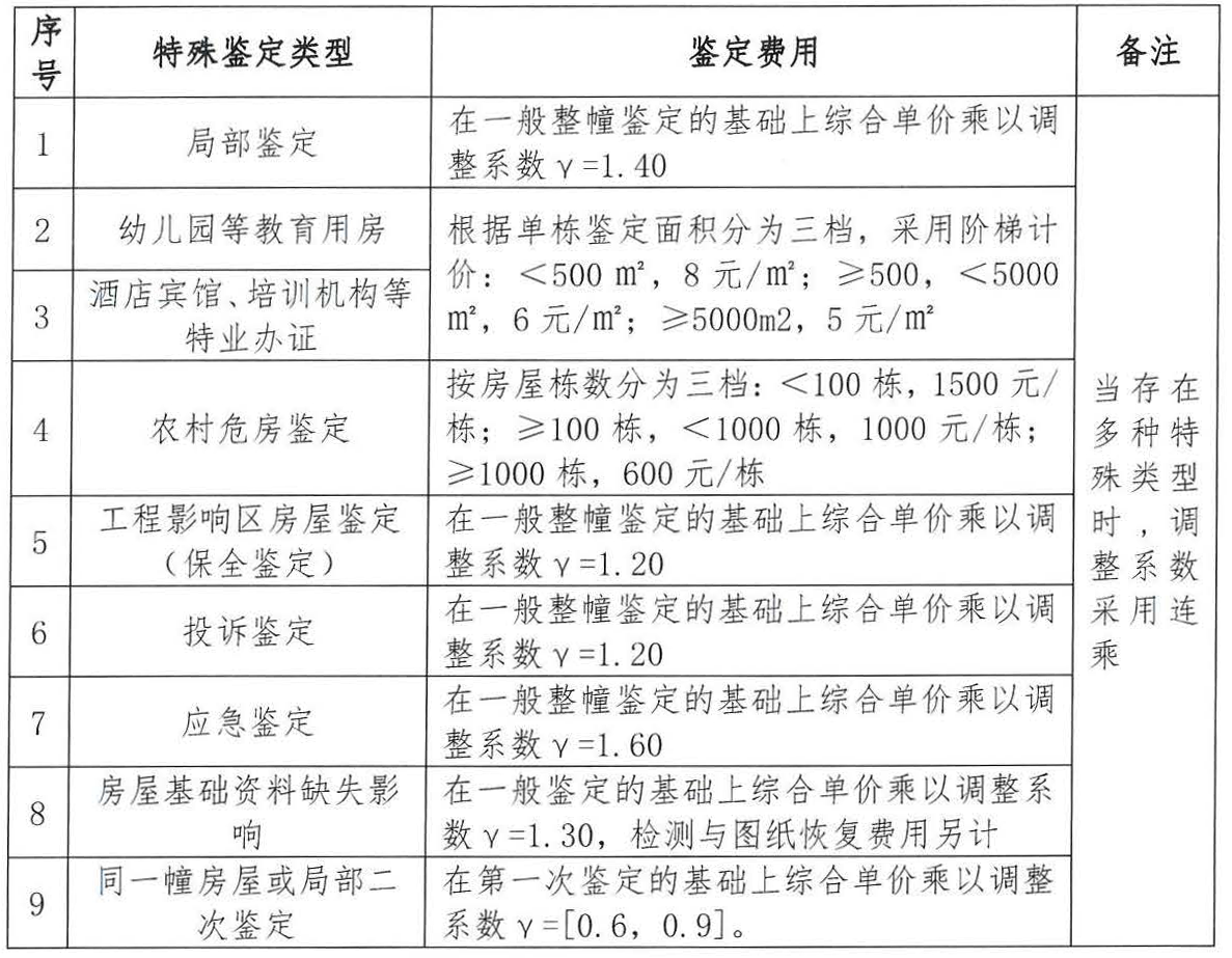 第六條一般情況下的房屋安全鑒定, 按表1計費;特殊情況下的房屋安全鑒定,按表2進行調整后計費。